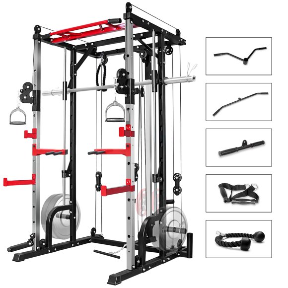 Major Lutie Multi Function Smith Machine 1400 Lbs Power Cage With Cable Crossover Machine And More Strenght Training Attachment Walmart Com